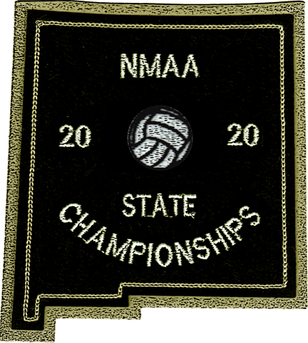 This is the souvenir letterman patch available for the 2020 NMAA State Volleyball Championships.