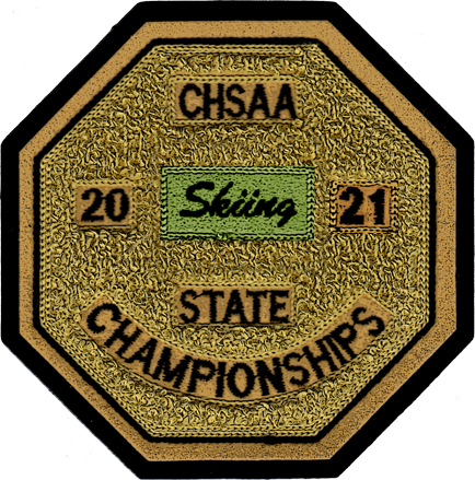 This is the souvenir letterman patch available for the 2021 CHSAA State Skiing Championships.