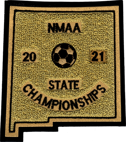 This is the souvenir letterman patch available for the 2021 NMAA State Soccer Championships.