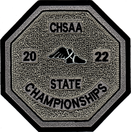 This is the souvenir letterman patch available for the 2022 CHSAA State Track & Field Championships.