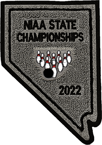 This is the souvenir letterman patch available for the 2022 NIAA State Bowling Championships.