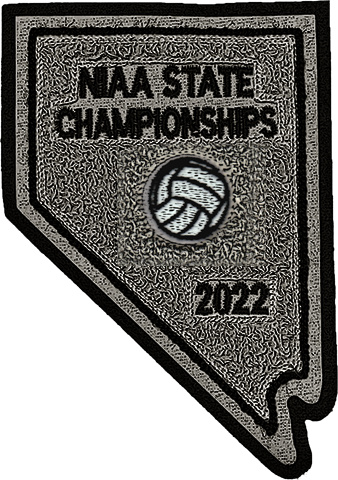 This the souvenir letterman patch available for the 2022 NIAA State Volleyball Championships.