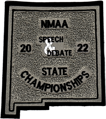 This is the souvenir letterman patch available for the 2022 NMAA State Speech & Debate Championships.