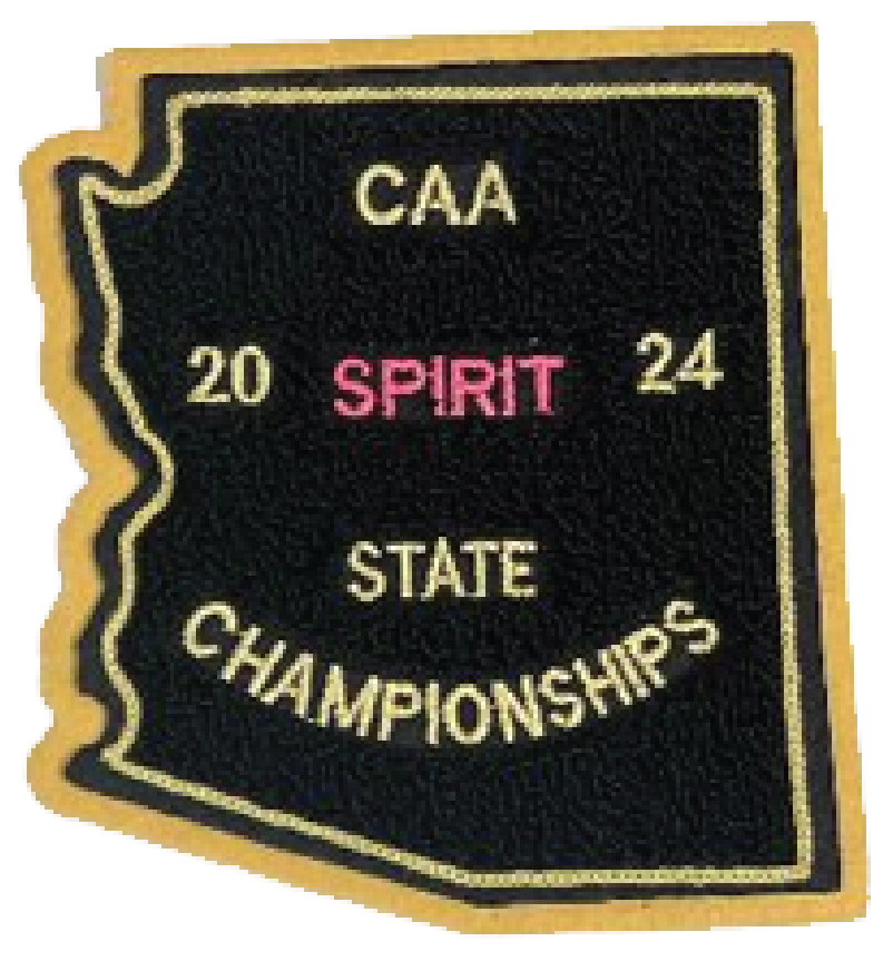 This is the souvenir letterman patch available for the 2024 CAA State Spirit Championships.