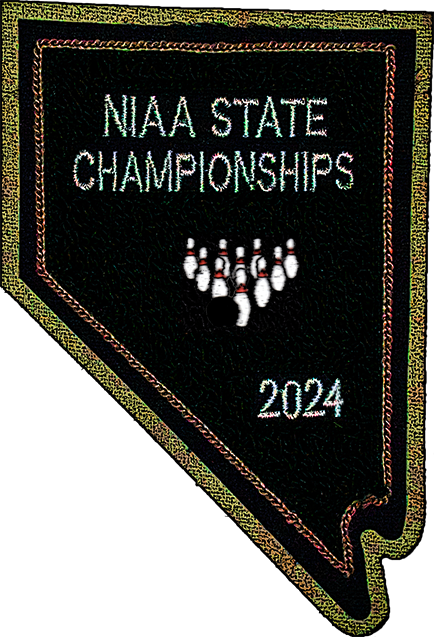 This is the souvenir letterman patch available for the 2024 NIAA State Bowling Championships.