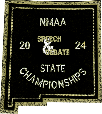 This is the souvenir letterman patch available for the 2024 NMAA State Speech & Debate Championships.
