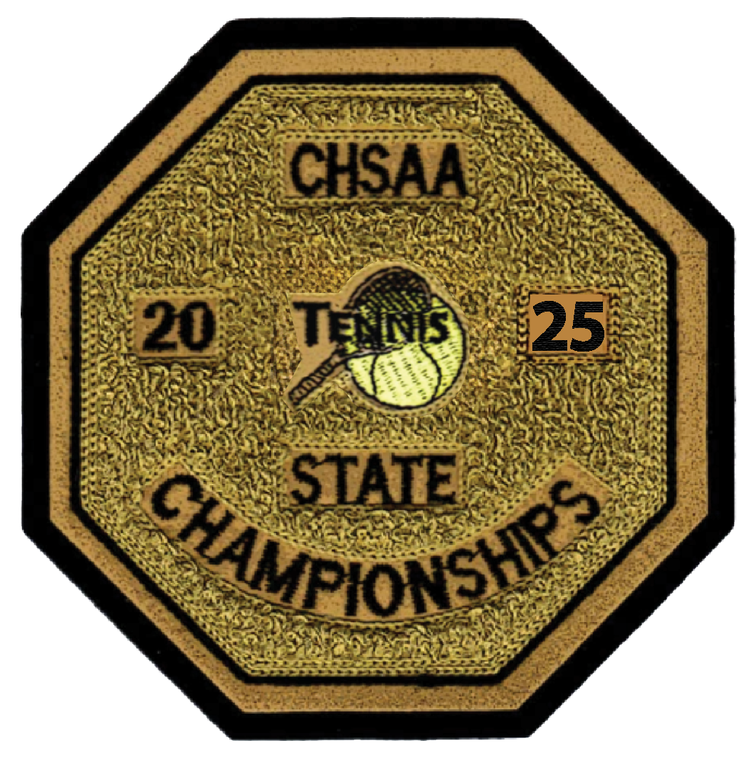 This is the souvenir letterman patch available for the 2025 CHSAA State Tennis Championships.